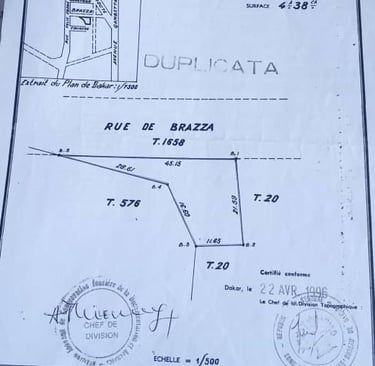 Situé au cœur de Dakar, ce terrain à titre foncier est une opportunité rare à ne pas manquer. Localisé sur la rue de Brazza, cet emplacement privilégié offre un accès facile aux commodités locales, aux transports en commun et aux principales artères de la ville. Que vous souhaitiez y construire un immeuble résidentiel, commercial ou un projet mixte, ce terrain dispose de toutes les caractéristiques nécessaires pour réaliser vos ambitions. Sa situation centrale en fait un investissement idéal dans une région en pleine expansion. Ne laissez pas passer cette chance d'acquérir un bien immobilier dans l'une des zones les plus dynamiques de Dakar. Contactez-nous dès aujourd'hui pour plus d'informations et découvrir le potentiel que ce terrain peut offrir.